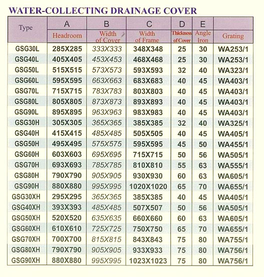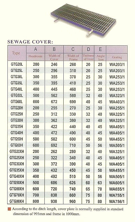 Eg.For a long ditch with a bottom width of 400mm in the main highway,GTG40XH drainage cover should be chosen as the proper specification.