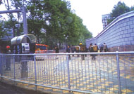 立柱用膨脹螺栓固定在混泥土基礎(chǔ)(見圖A)或焊接在預(yù)埋件或鋼梁上(見圖B);橫桿或彎頭的接點經(jīng)點焊刷漆后移入立柱的球接頭內(nèi)。