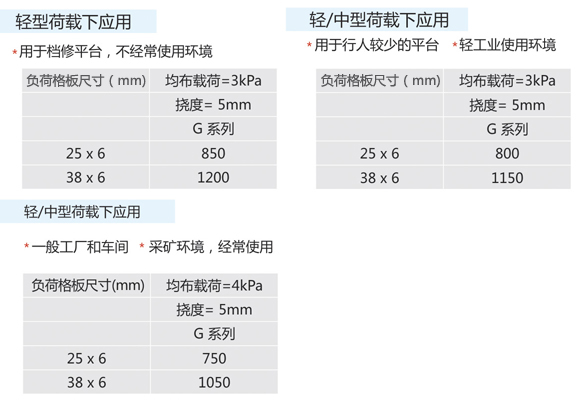 從安全載和撓度表里選擇合適的格板型號,選擇材料,表面處理和顏色。